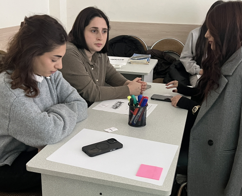 Участники мастерской провели командные обсуждения, анализируя ситуационные задачи (case study). Эксперт мастерской, психолог, преподаватель Университета «Урарту», кандидат психологических наук А. Мурадян, дал профессиональную оценку работе команд.